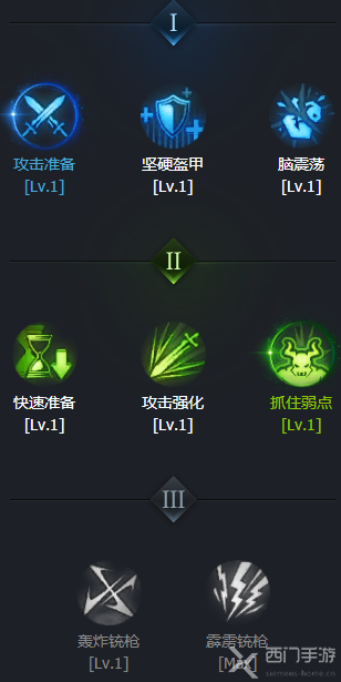 7级,分支加点攻击准备、抓住弱点,带速行;