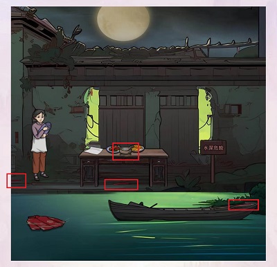 7、用桌子上的火柴,将右侧的灯笼点亮,出现“壹”、“玖”数字;