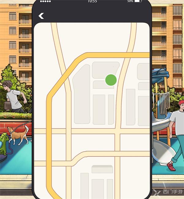 3、上滑中年女人裤兜里的手机,出现手机定位;