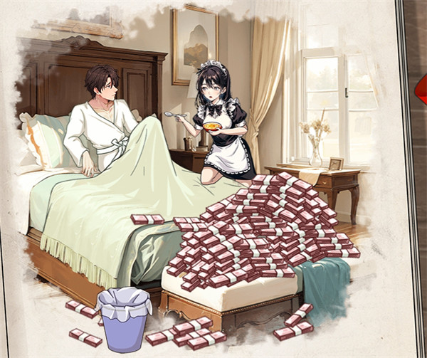 第一页:1.将床上的钱仍进垃圾桶,仍两次,2.将女仆扔出窗外;