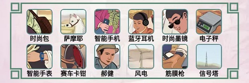 时尚包、萨摩耶、智能手机、蓝牙耳机、时尚墨镜、电子秤、智能手表、赛车卡钳、郝健、风电、筋膜枪、信号塔