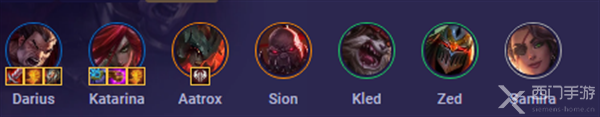 1、阵容成员:诺手+卡特+剑魔+塞恩+克烈+劫+沙弥拉