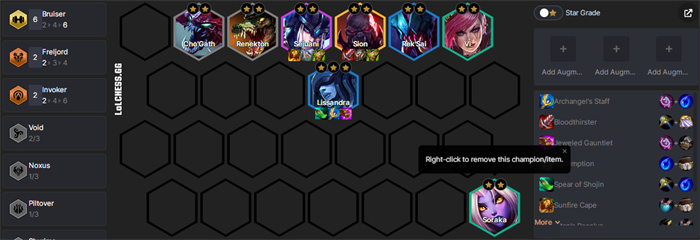推荐理由:阵容主C为卡莎,加上六挑战者的高额伤害,只要成型,阵容上限很高,到九级可以适当换上一些九五,依据局势而定。