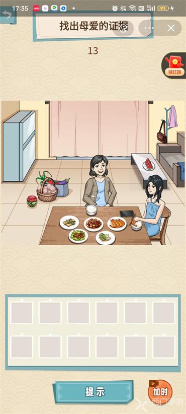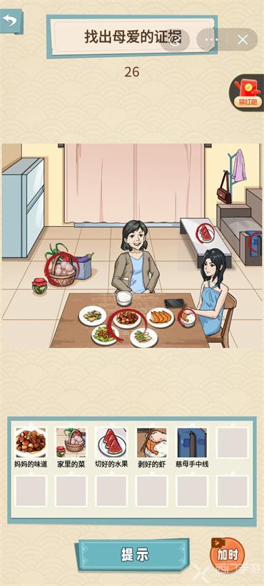 1、妈觉冷:拖动衣架上的衣服到女儿身上,瞒着的病:上划母亲的口袋的纸条,露出病例书;家里的味道:点击冰箱,冰箱打开点击露出的饺子,永远的后盾、未接的挂念:点击手机,分别点击v信图标和通迅录图标,偷塞的钱:点击衣帽架上的包,露出偷塞的钱点击即可,洗净的衣服:点击窗帘打开,点击晾着的衣服。