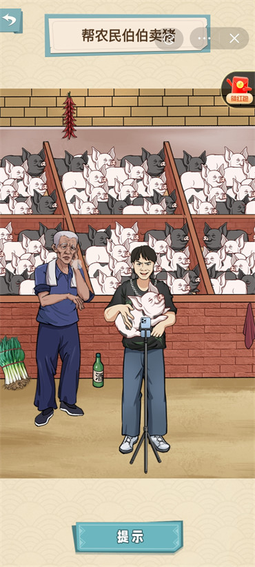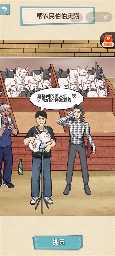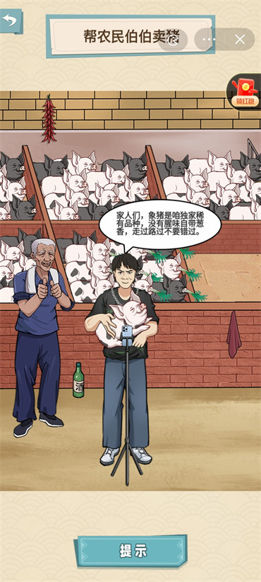 在就挺秃然的这个抖音软件中的小游戏,有很多的关卡等着我们通过呢?这里小编给大家带来的一关直播卖猪中的“帮农民伯伯卖猪”的过关攻略来看看吧。