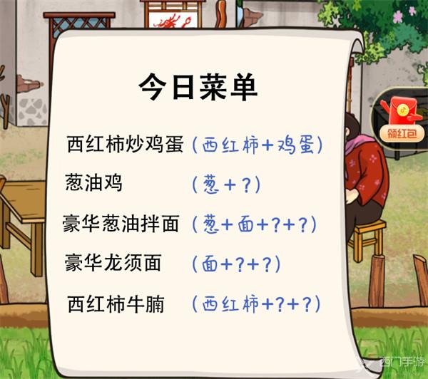 西红柿炒鸡蛋:西红柿+鸡蛋葱油鸡:葱+尖叫鸡