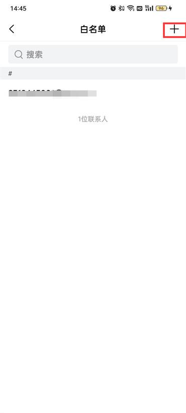 5.来到白名单的页面中点击右上角的【加号】图标;