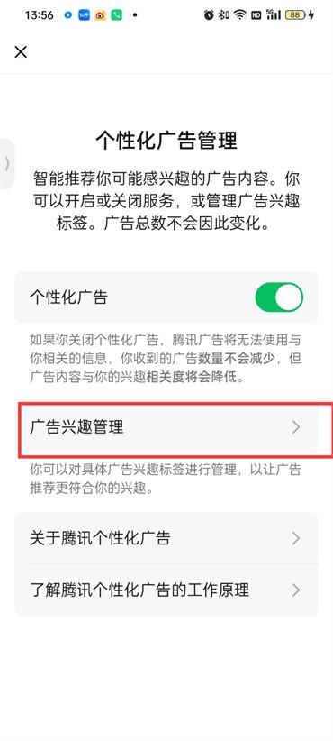 5.最后进入到广告兴趣管理的页面中点击即可选择;