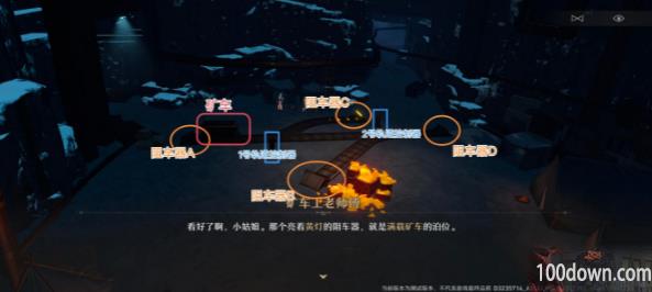 因此要求是,将矿车装上地髓矿后,使矿车抵达终点(亮黄灯的阻车器)。