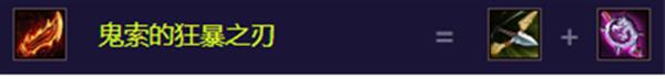 蓝霸符(女神之泪+女神之泪)、海克斯科技枪刃(暴风大剑+无用大棒)、鬼索的狂暴之刃(反曲弓+无用大棒)