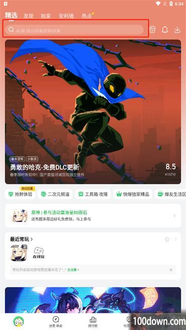 1.首先打开好游快爆进入到首页之后点击【搜索框】;