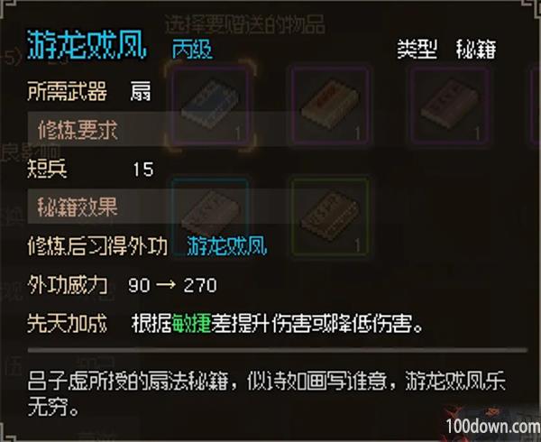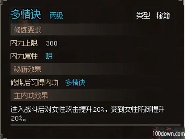 4、好感度够后向其请教可以得到获得【游龙戏凤】,邀请入队可以获得【多情决】。
