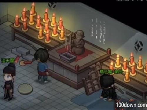 2、接着在夜晚的时候来到破庙中,使用潜行将npc洛千雪吸引到一边去;
