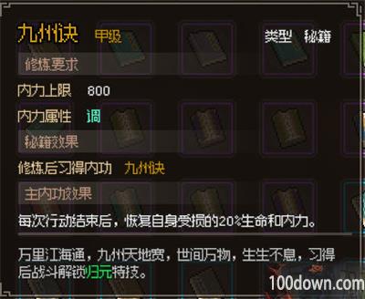 7、九州决:加入道玄宗等好感100之后触发,击败魔教妖人就有机会获得;