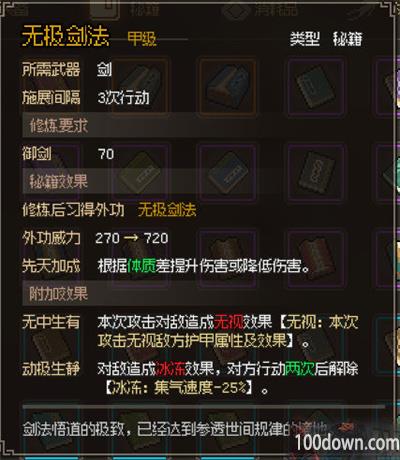 8、无极剑法:同样是入道玄宗和掌门关系达到40就能请教直接获得;
