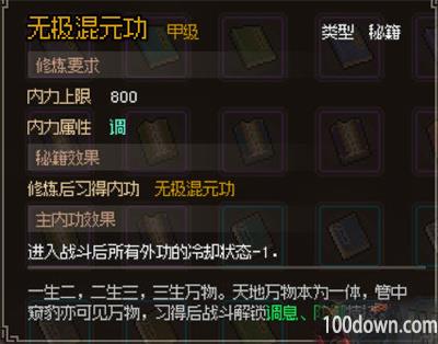 4、无极混元功:它的获取是要和道玄宗门派的关系达到60之后完成任务就能获取到;
