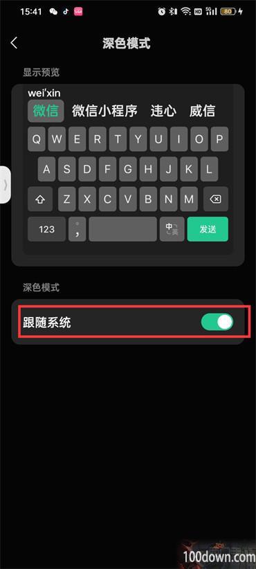 打开微信键盘深色模式-跟随系统-浅色模式即可;