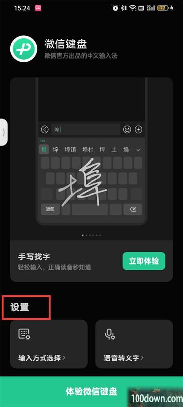 1.首先打开微信键盘软件进入到主页后上滑到设置的列表;
