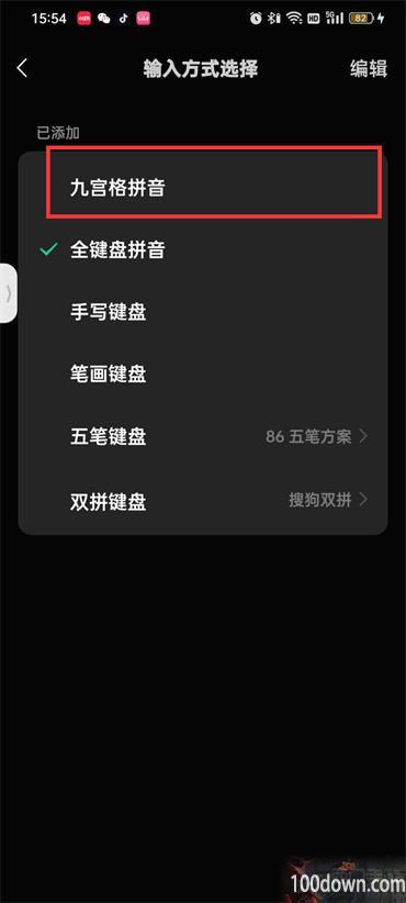 3.最后在输入方式选择的页面中点击【九宫格拼音】即可;
