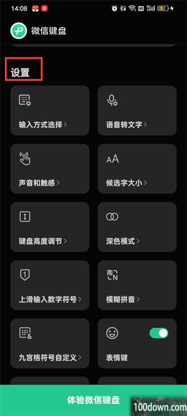 1.首先打开微信键盘,然后进入到微信键盘的页面中往上滑动到设置;