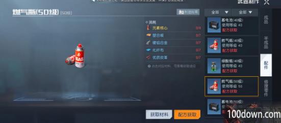 3、在武器制作中选择【配件】,然后往下拉就可以找到燃气瓶;