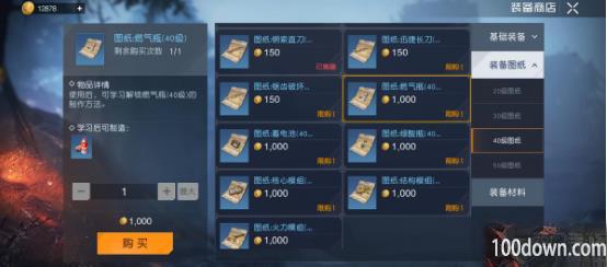 4、这个燃气瓶需要购买图纸,在装备商店-装备图纸中购买获取,价格是1000-2000(不同等级价格不同)。