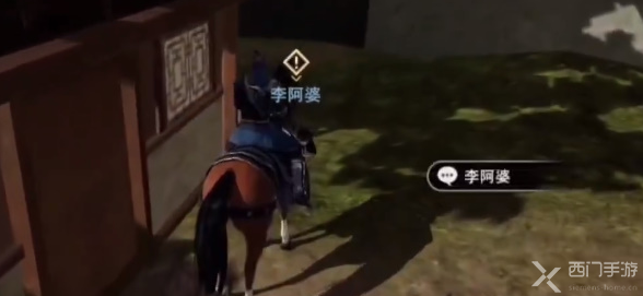 1、玩家达到47级之后,前往渝州城,在下图的小摊房子后找到npc【李阿婆】;