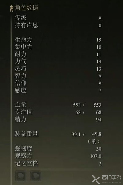 4、【力气】:使用重型武器的必需能力值。装备拥有力气加成的武器会提升攻击力,也会影响物理防御力。