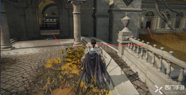 10、向着图2的方向,在黄金树大教堂赐福出来后,下楼梯,进人建筑里坐电梯下一楼;