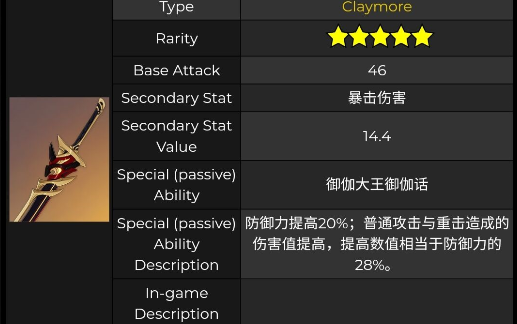 角色防御力提高;普通攻击与重击造成的伤害值提高,提高数值相当于防御力的一定比例。