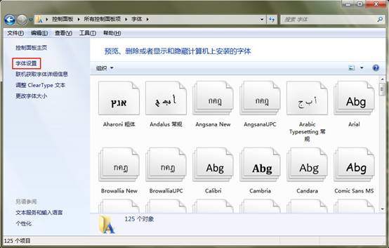 2、打开控制面板后,在里面找到“字体”这个控制项,并且单击它打开,如下图所示: