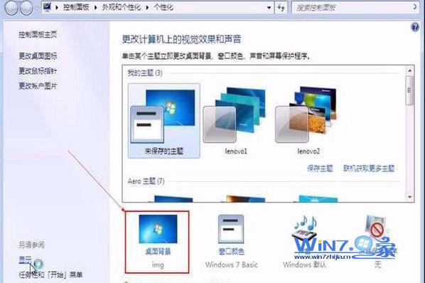 2、然后在打开的“个性化”窗口中,点击“桌面背景”选项;